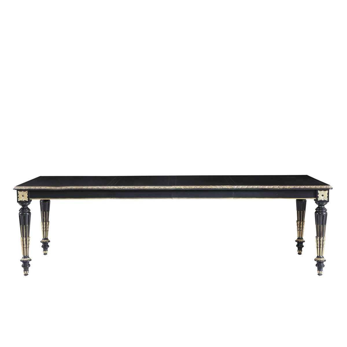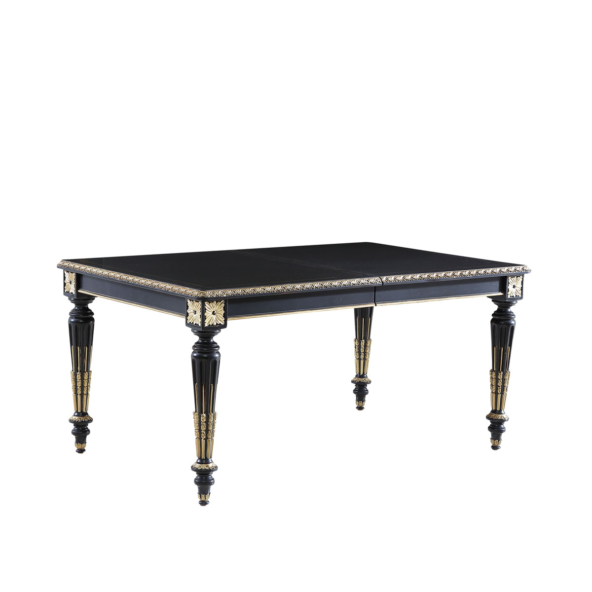 * 為表現(xiàn)法國(guó)路易時(shí)期的莊嚴(yán)和浪漫,以法國(guó)凡爾賽宮為設(shè)計(jì)元素。使用歌頌路易十四時(shí)期的太陽花雕刻,顯示其王權(quán)穩(wěn)固地位的錐形腿腳設(shè)計(jì);配以鉆石圖案木皮貼面、可調(diào)節(jié)的伸板設(shè)計(jì)和貼金工藝,完美演繹了法式宮廷家具的奢華尊貴。