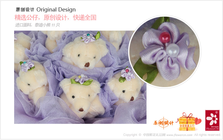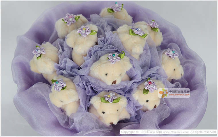 進口面料,泰迪小熊11只,網紗及高檔禮品紙包裝.