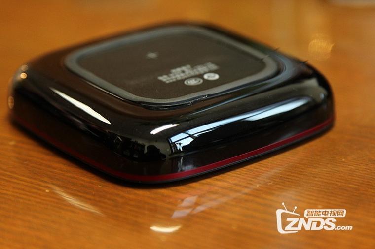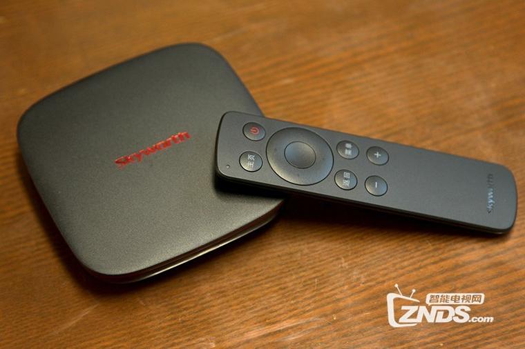 主機尺寸屬于迷你款,和某米幾乎相同尺寸,機身頂部為磨砂工藝,鑲以創維的紅色 LOGO。
