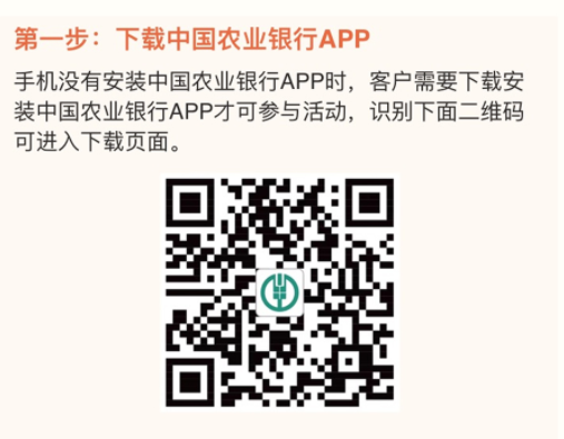 1.確保手機(jī)已安裝并注冊(cè)農(nóng)行掌銀APP,未下載農(nóng)行掌銀APP的客戶可打開手機(jī)應(yīng)用市場(chǎng)搜索“中國(guó)農(nóng)業(yè)銀行”或掃描下面二維碼下載安裝并注冊(cè)為中國(guó)農(nóng)業(yè)銀行掌銀用戶。