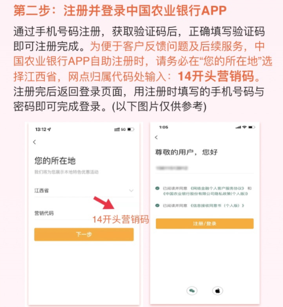 2.為便于客戶反饋問題及后續(xù)服務(wù),中國(guó)農(nóng)業(yè)銀行APP自助注冊(cè)時(shí),請(qǐng)?jiān)谒诘剡x江西,輸入代碼143609。