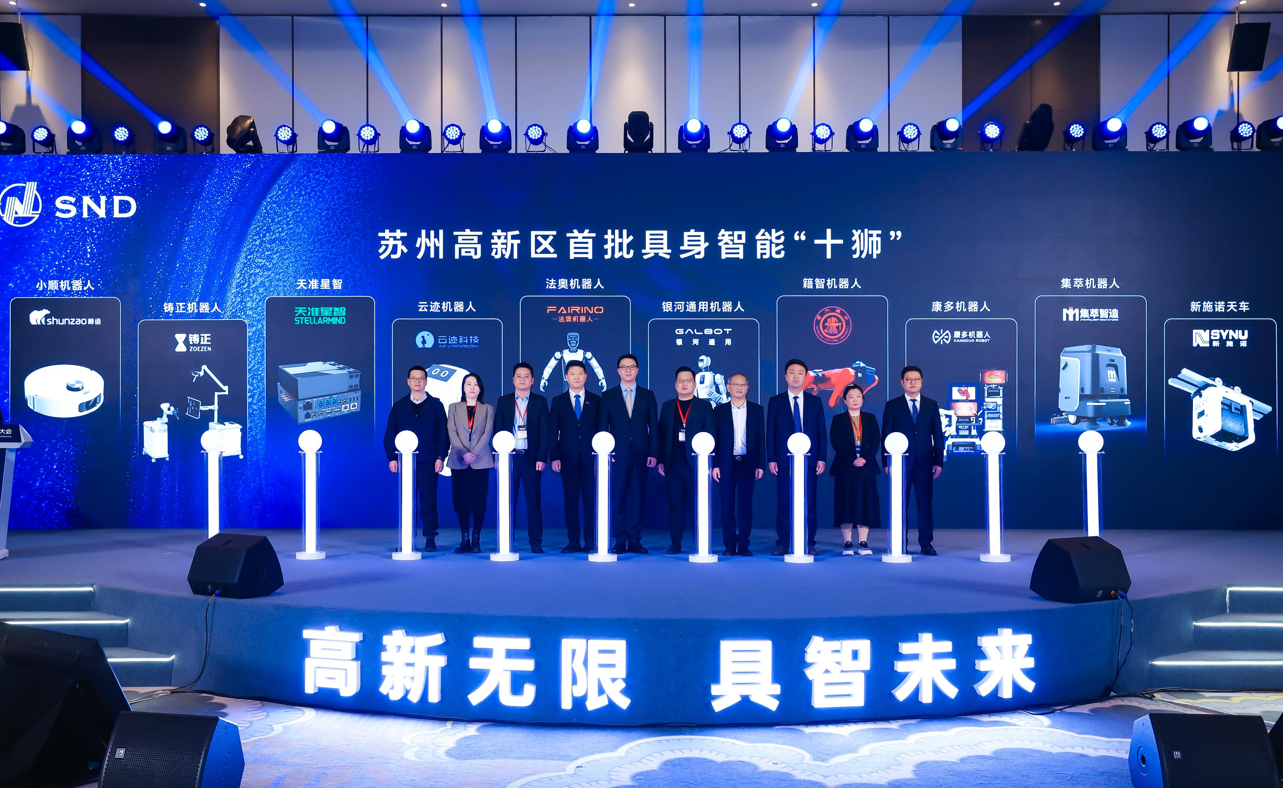 現場,蘇州高新區重磅發布首批具身智能“十獅”名單,以標桿引領激發產業活力,助力區域打造具有全國影響力的具身智能產業創新高地。首批具身智能“十獅”名單包括法奧機器人、銀河通用機器人、云跡機器人、籍智機器人、天準星智、康多機器人、鑄正機器人、集萃機器人、小順機器人、新施諾天車。