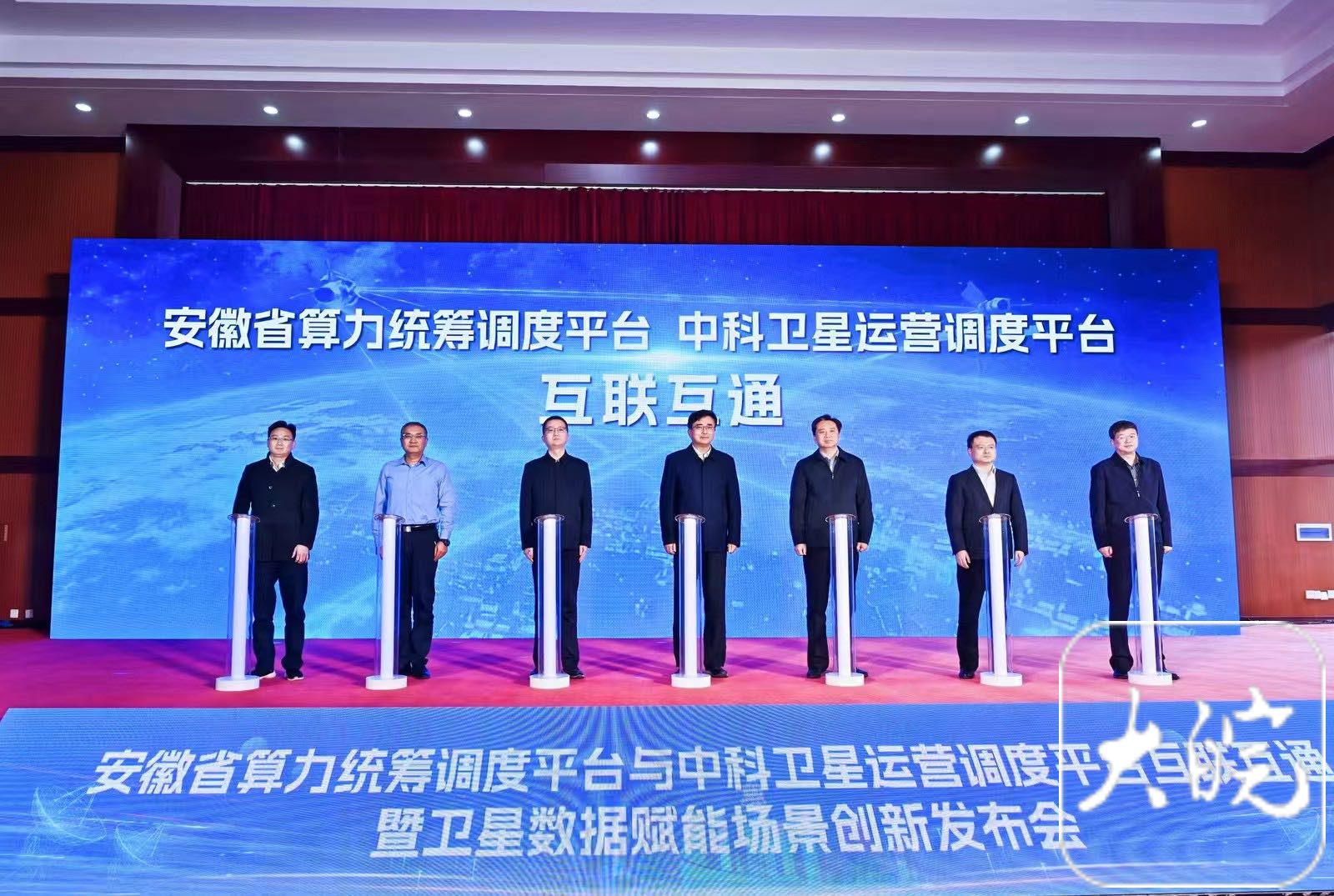 在當天舉行的“安徽省算力統籌調度平臺與中科衛星運營調度平臺互聯互通暨衛星數據賦能場景創新發布會”上,由蕪湖市大數據建設投資運營有限公司投資建設的安徽省算力統籌調度平臺與中科衛星運營調度平臺正式實現互聯互通,通用算力、智能算力、超級算力、量子算力、天基算力“五算合一”體系全面貫通,“天基觀測-數據接收-算力調度-信息提取-場景服務”的全鏈條首次在省級層面實現一體化調度與協同,標志著安徽在統籌算力資源、激活數據價值方面走在全國前列。本次發布會由安徽省數據資源管理局、中國科學院空天信息創新研究院(以下簡稱“空天院”)指導,中科衛星科技集團有限公司(簡稱“中科衛星”)主辦,合肥市大數據資產運營有限公司、蕪湖市大數據建設投資運營有限公司承辦。